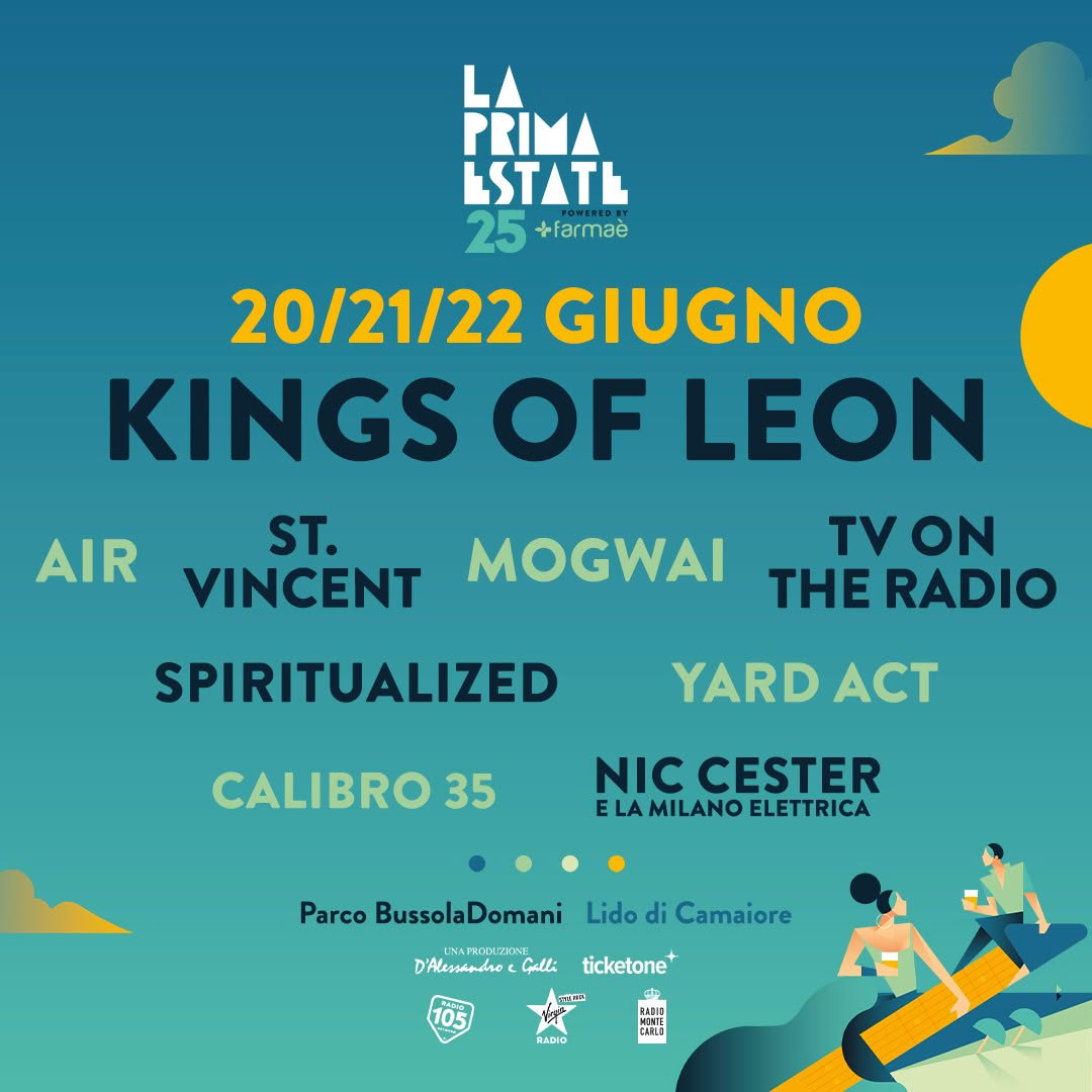 - Kings of Leon – I Kings of Leon hanno annunciato che Caleb Followill ha recentemente subito un grave infortunio, fratturandosi il tallone e rendendo necessaria un’importante operazione d’emergenza che gli impedirà di viaggiare e di esibirsi. Il processo di recupero, sotto stretto controllo di esperti ortopedici, dovrebbe durare circa 8 settimane. La band, con grande rammarico, ha quindi cancellato tutti gli show da headliner previsti nei festival di Regno Unito ed Europa nei mesi di giugno e luglio di quest’anno, inclusa la partecipazione a La Prima Estate 2025 del 22 giugno.